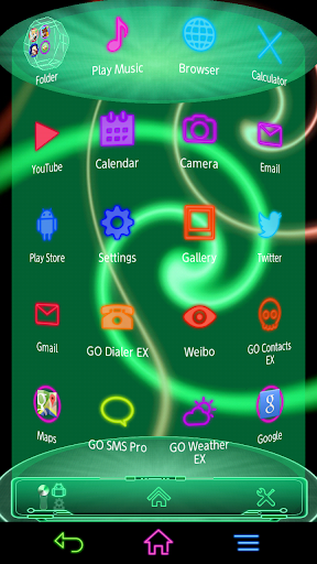 Neon Colors theme for Next Launcher 3D, covers icons, wallpaper, folders interface and app drawer.