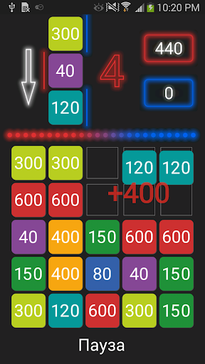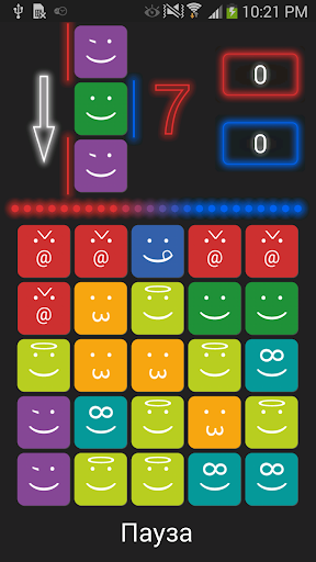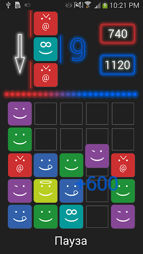 Neonslide is a 3-in-a-row tile puzzle in which you play against an opponent to build sets of tiles in a shared field. Build your own sets carefully and destroy your opponent's plans to get a score gap of 1200 or more and win.