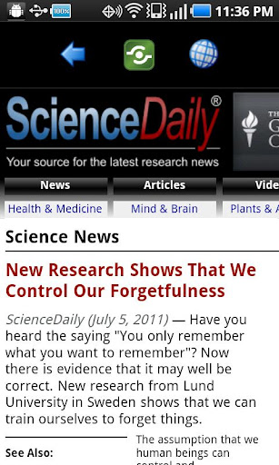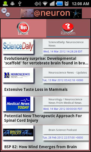 Neuron LCD provides a simple button interface providing single-click access to the latest Neuroscience news & Blogs. Scientists and layman alike will appreciate the excellent array of feed channels featuring news, research and blogs from the likes of ScienceDaily, MITPress, The Weizmann Wave, Scientific American blogs, The Brain Science Podcast, and more !