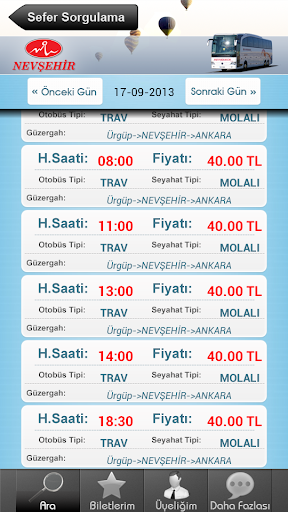 Nevşehirliler Seyahat'in şehirlerarası ulaşım biletlerinin satılmasını sağlayan bir Android uygulamasıdır.