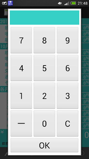 その他、間違って金額を入力した場合、入力アイコンで表示される電卓中、減額する項目を選んだ上で減額する金額の前に「-」を追加して下さい。