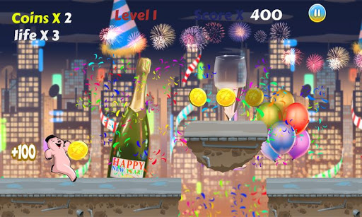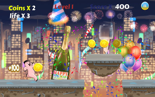 Let's Celebrate! It's party time! Play New Year Run – Countdown 2015! It's a new and very nice New Year themed runner game. As in the case of the Santa game, there is a fun fact well hidden: New Year is not only an event, but the name of Santa's youngest distant relative, a nice and jolly piggy, who always wanted to be Santa. He helped Santa a lot of times to deliver things when the Sleigh was on maintenance, so he decided to do something similar - to run his own festivities, conveniently named after himself! No, no Piggy Claus, but New Year's Eve!