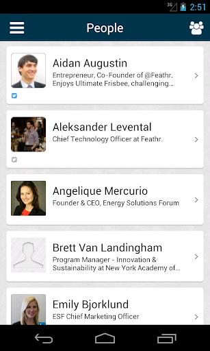 The New York Energy Week 2014 app simplifies follow-up with people you meet at the event! Connect instantly to world-changing thinkers and innovators via LinkedIn, Twitter, or email, or save their information straight to your phone.