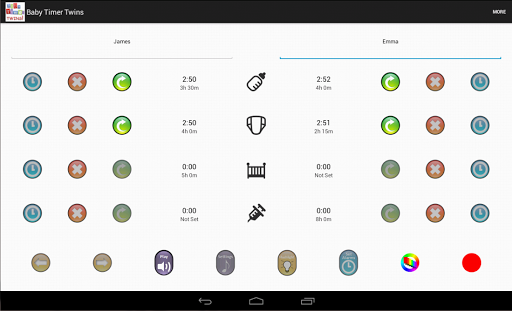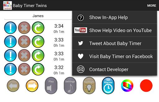 Baby Timer TWINS is a simple, easy-to-use timer that lets you know how long it has been since your baby has performed certain activities, such as eating, sleeping, dirtying a diaper, and taking medicine.