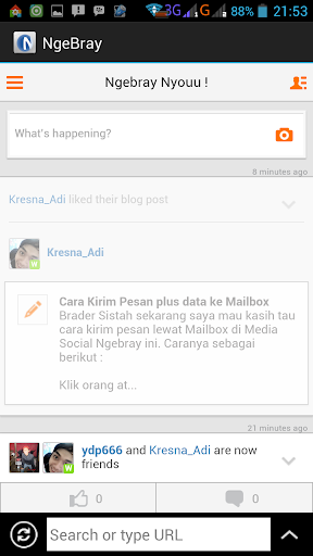 Ngebray Nyouu kini hadir sebagai bagian dari perkembangan media sosial. Dengan fasilitas dan fitur yang lebih nyaman dan lengkap bagi usernya. Selain fitur yang sudah umum didapat dari media sosial seperti add friends, follow, upload foto/video, group, dan lain-lain. Ngebray Nyouu juga menjadi media sosial yang memberikan fasilitas untuk membuat blog tanpa harus keluar dari website media social. Belum lagi informasi lowongan kerja yang update. Semua fasilitas tersebut disediakan secara lengkap di Ngebray Nyouu.