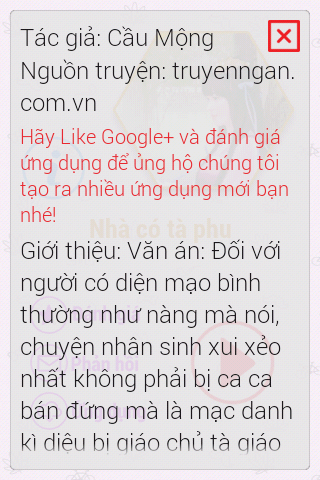 Đây là ứng dụng đọc truyện Nhà có tà phu được thiết kế dành cho các bạn yêu thích thể loại truyện ngôn tình.