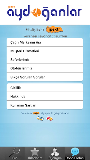 Niğde Aydoğanlar Turizm'in şehirlerarası ulaşım biletlerinin satılmasını sağlayan bir Android uygulamasıdır.