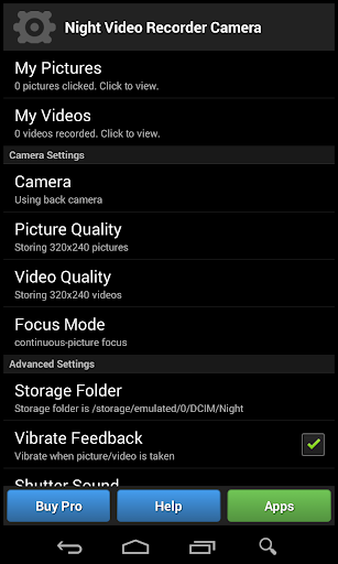Night Video Recorder Camera is a night vision app for professional or personal video recordings and is the best app available in the Android market for low light and night time recordings.
