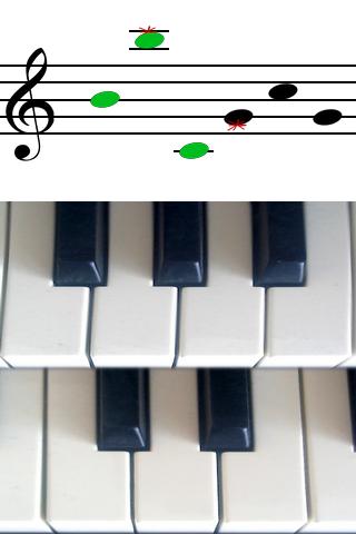 Note training / score reading practice. Practice reading notes with a virtual piano. Random notes are shown on bass and treble clefs, which are then to be played on a virtual piano.