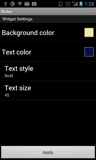 Text automatically resizes to fit the widget. Supports multiple widgets, each widget instance can have its own notes.
