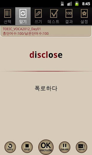 - 숨김시간 : 단어가 나타난 후부터 뜻이 나타나기까지의 뜻