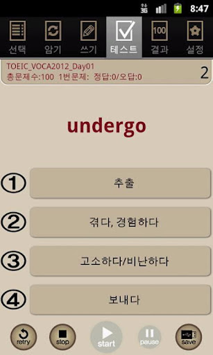 - 'SAVE' 버턴으로 다음에 복습하고자 하는 단어들만 모아둘