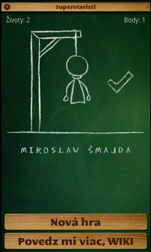 Klasická hra Obesenec, v ktorej súťažiaci háda písmená v náhodne zvolenom výraze.