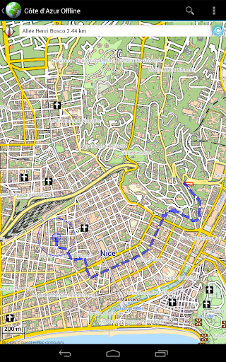 This map of Côte d'Azur is ready to go: just install and this map is always with you whether you are connected or not. High-detail map with many points of interest, such as hotels, museums, restaurants, shops, parks, viewpoints, banks. Or search for any street by name.