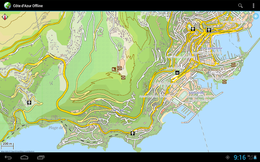This map covers the French Riviera (or Côte d'Azur) from Saint-Tropez in the west to the Italian border in the east, including: Saint-Tropez, Cannes, Antibes, Nice, Monaco and Menton. Caution: this app is very large due to the size of the map.