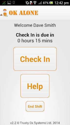 Ok Alone - is an app which enables workers to notify the base that they are ok every hour or a set period of time.