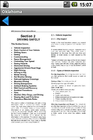 A convenient and complete Oklahoma Commercial Driver License Manual. This is a must have study aid to help you prepare for the Oklahoma CDL examination. Divided into multiple sections for quick access and loading.