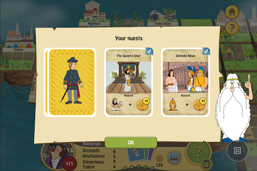 Once Upon a Time… Man is a stimulating interactive brain board game, where kids and adults can check their knowledge of history and continue learning. At the very beginning, each player chooses their own character to play with along with the DICE+ (which creates further excitement, but is not mandatory) to begin the journey through the dynamically generated map, which is different in every game. The main goal of the game is to fulfil the quests related to famous historical characters and events, which are drawn at the beginning of the game. Finishing quests give you ducats, when you are the first to tackle all of them you are the victorious winner of the game! Don’t expect and easy road to victory as its full of obstacles and unexpected events. Adding another layer of strategy with the use of power ups and boosters, other players can tactically derange you from your trail or strengthen their heroes and his statistics!
