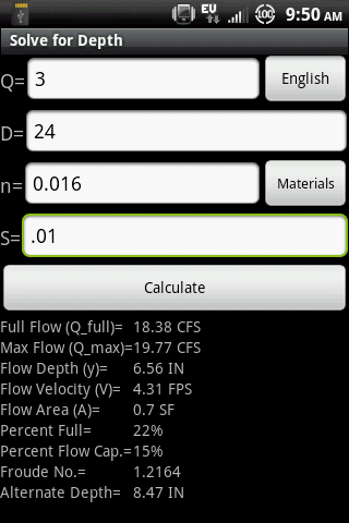 Open Channel Flow Calculator is a powerful little engineering utility for quick and accurate calculations. OCF Calculator will solve for any variable in any of the following common open channel flow calculations in English or Metric units: