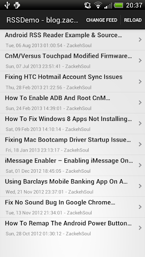 It's an open-source demonstration of reading and displaying an RSS feed in Android. You can view the source for the application here: https://github.com/ZackehSoul/RSSDemo.