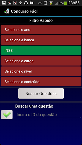 * Você tem duas opções para adquirir os pacotes com questões para o Concurso Fácil: Google Play ou diretamente pelo seu celular no ícone "Comprar Questões".
