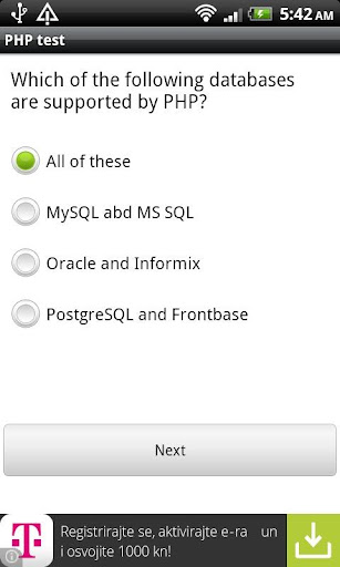 PHP: Hypertext Preprocessor programming language test with 20 questions randomly selected from a total amount of 320. Pupils, students and other interested, test your knowledge and have fun.