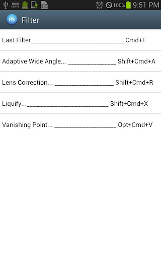 Photoshop CS6 Keyboard Shortcut Lite Application list almost shortcuts of PS CS6 software.