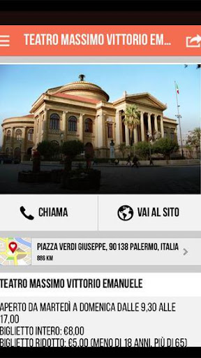 Sei in vacanza a Palermo? Con questa app avrai una guida semplice e completa ai tanti tesori della città (dalle chiese ai teatri, dai parchi alle ville), completa di foto, recapiti telefonici e di tutte le informazioni aggiornate sugli orari di apertura, indispensabili per programmare al meglio la tua visita.