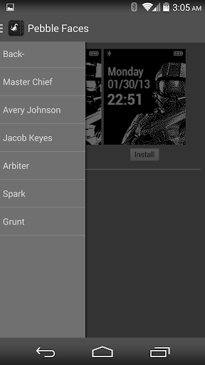 With the large collection of Pebble Faces, you can have a watch face that matches the video game you’re playing, or the movie you’re watching! It is the ultimate personalization tool exclusive to Android users! With categories including (but not limited to) Star Wars, Marvel, Halo, Matrix, Cereals, Logos, GTA, Minecraft, and Dinoscript!