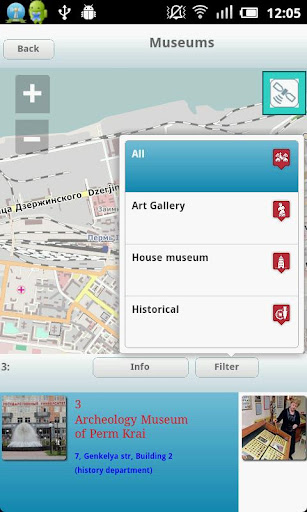 Perm: micro-guide is an information and reference application, a tourist guide for the city of Perm and contains information on: