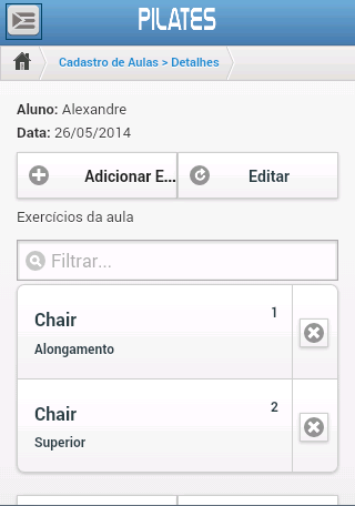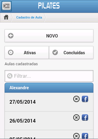 Aplicativo desenvolvido para estúdios de Pilates para armazenar, organizar e monitorar as aulas de seus alunos.