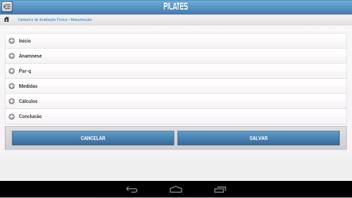 O aplicativo também possui um módulo de avaliação física, com cálculos de percentual de gordura, IMC, par-q, VO2, gráfico de peso e mais!