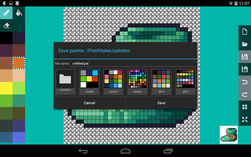 - when using the pen or eraser, tapping again on a single pixel you've changed to undo it to its previous color