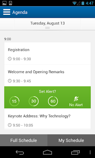 - Agenda with ability to create personal notifications