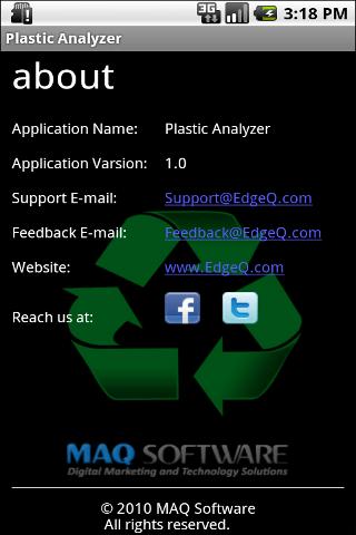 Plastic analyzer v1.1 Plastic analyzer helps you know the quality of plastic you are using on a daily basis. Go green.