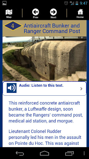 Experience the history of Pointe du Hoc, and tour this World War II D-Day landing site in France. This GPS-enabled application, created by the American Battle Monuments Commission, allows you to experience the site, where U.S. Army Rangers scaled the 100 ft. cliffs of Pointe du Hoc, destroyed a critical German battery and took control of the coastal highway, playing a crucial role in the Allied success of D-Day.
