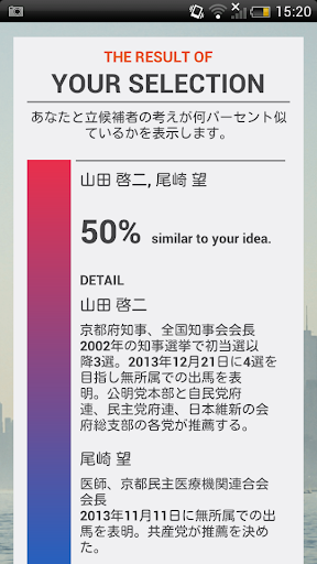 選挙の立候補者の考えがあなたにどのぐらい似ているかがわかります。