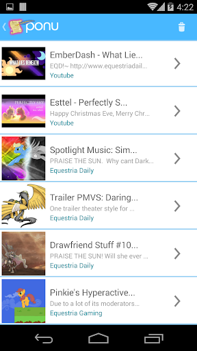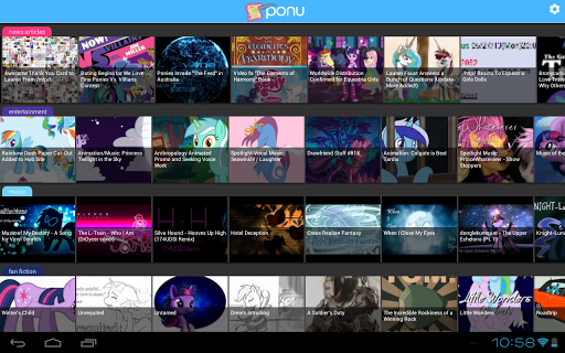 Ponu News is the news reader of the My Little Pony / Brony community, incorporating all the latest news, entertainment, music, comics, and fan fiction into a sleek package. Stay up-to-date with constantly updated tiles and take these stories on the go with offline viewing. Share these stories on social media and listen to fan music right in the app.