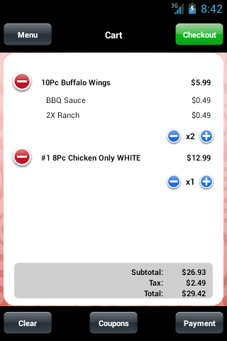 ➢ Checking out is easy, pay cash when your order is picked up or delivered, pay by credit card on your phone right in our Mobile App or on Porky’s Pizza Palace Hungerrush Online Ordering site.