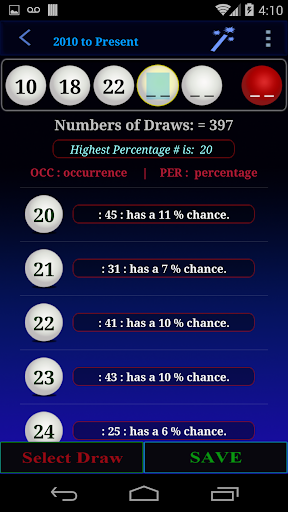 6 - Database. Power ball app has its own database where you can enter, edit, delete and save unlimited numbers. And for your convenient the app is integrated with custom design keyboard to make it easier and faster to enter your numbers.