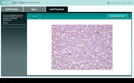 Practice Anatomy Lab™ (PAL™) 3.0 is an indispensable virtual anatomy study and practice tool that gives you 24/7 access to the most widely used lab specimens, including human cadaver, anatomical models, histology, cat, and fetal pig. Each module includes hundreds of Self Review images with interactive tools and built-in audio pronunciation. Select images also link to 3-D anatomy animations. Users may assess their knowledge of anatomy by taking practice quizzes and simulated fill-in-the-blank lab practical exams.