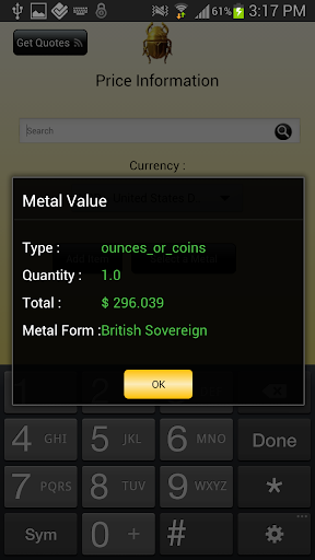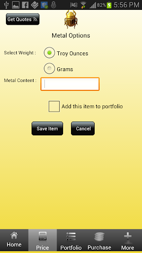 If there is a gold or silver coin price not given then this app allows you to add any precious metal coin, bullion or jewelry item to the database. You can even factor in a premium to the coin, bullion or scrap value. Perfect for the gold or silver coin collector, numismatist or scrap silver and gold dealer