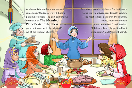 At dinner, Madam Luisa announced something. All of students cheered. Everybody wanted a chance to joint Monsieur Pinnot, the most famous painter in the country. The day of painting selection came. But look! Princess Badindi was sitting alone in the corner of the park. What has happened? Find out the rest of the story while you're enjoying the app!