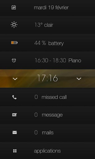 A full set of widget, wich include clock, date, agenda, battery, shortcuts... everything you need on your homescreen, with elegance