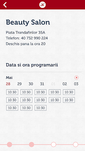 Tot ce trebuie sa faci este sa alegi mai intai serviciul, apoi artistul preferat, dupa care unul din intervalele disponibile; completeaza apoi datele tale de contact si confirma programarea.