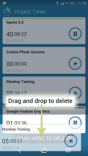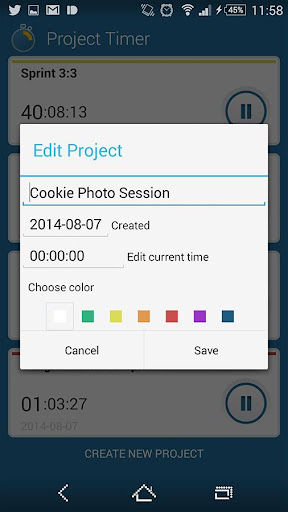 Project timer, timer list, list of timers, sum the time, create subprojects, productivity, business, sprint timer, agile and agility.