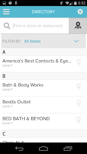 INTERACTIVE MAP – search for and get turn-by-turn directions to individual stores, restrooms, escalators, elevators, ATMs and other mall amenities.
