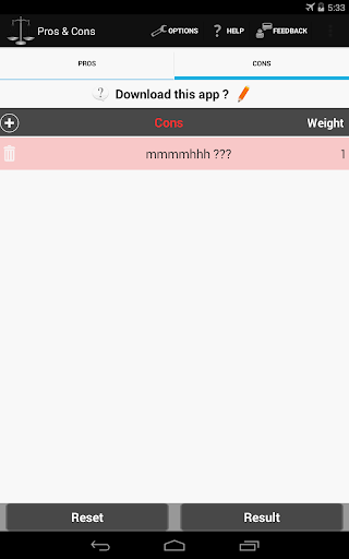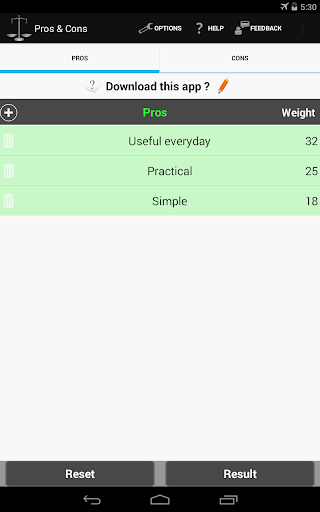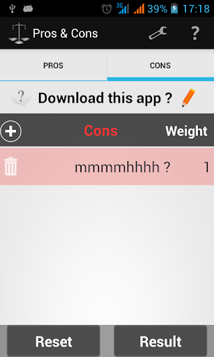 Do not hesitate, weigh the pros and cons by entering arguments with their respective weights (importance), and determine what is the right decision.