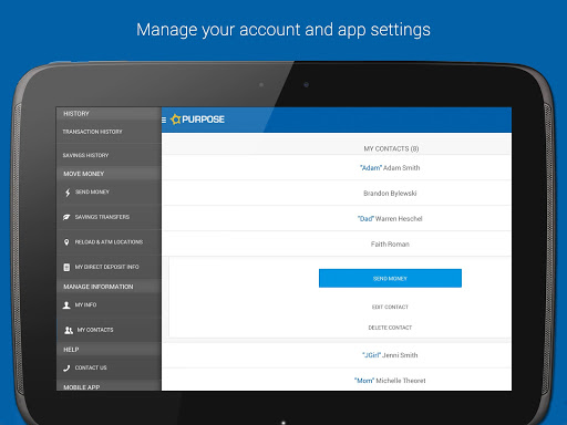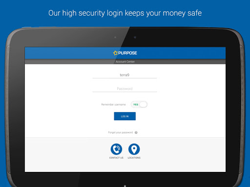 The security of your money and information is our highest priority. The app was built using the highest standards of mobile web security to ensure only you can access your account. Your account number is never shared and no private data is ever stored on your phone. Your account can be accessed using the same username and password you've already established on the web. Best of all, the Purpose Card mobile banking app is free!