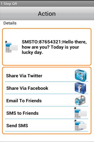 (6) SHARE GOOD NEWS – Easy to share your QR code or Barcode scan results with friends via Facebook, Twitter, SMS or email